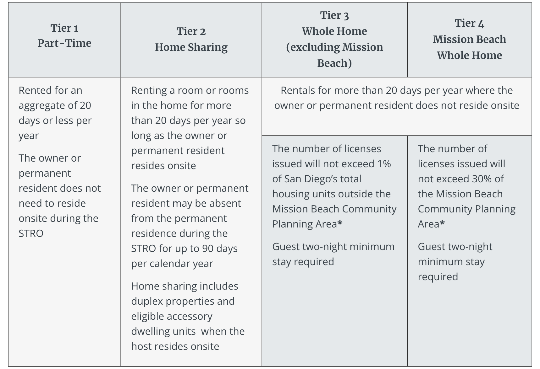 /The new short term residential occupancy ordinance (STRO) is in full effect, with some modifications recently made. This entails new requirements regarding vacation rentals, which have been categorized under 4 tiers. Licenses will primarily be awarded via lottery system, with exceptions like Mission Beach. Learn more about the updates on the ordinance below: