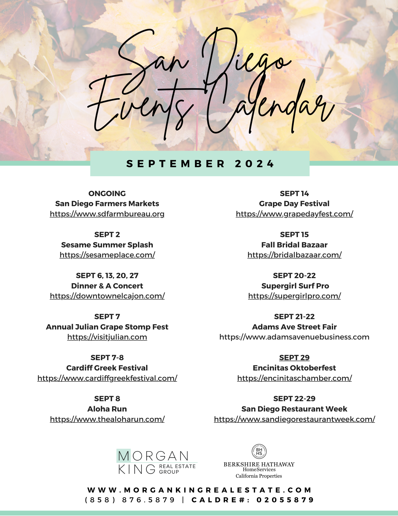 /Our September events calendar is now up and running for you to start planning for all the amazing things happening in San Diego this month. One of my favorites, is the San Diego restaurant week, where you can enjoy a list of incredible hot spots at a fraction of the cost! For the full list of all the fun things to do, make sure you checkout our calendar below.